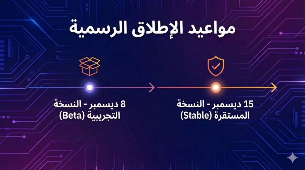 - 8 ديسمبر: إطلاق النسخة التجريبية (Beta) برقم إصدار 2.0.0.